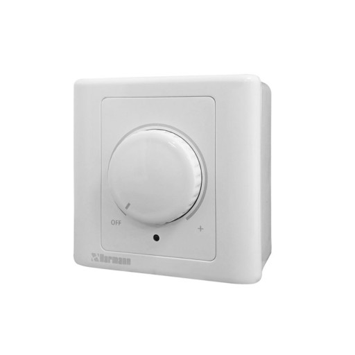Potencjometr umożliwiający nastawę wartości prędkości obrotowej wentylatorów wyposażonych w silniki komutowane elektronicznie EC lub innych urządzeń wyposażonych w wejście 0-10 VDC. Wbudowana dioda sygnalizuje podanie napięcia sterującego na silnik. Potencjometr przeznaczony jest do montażu wewnątrz pomieszczeń. Niedopuszczalny jest montaż na powierzchniach palnych. Stopień ochrony IP50. Ręczna bezstopniowa regulacja obrotów silników EC komutowanychelektronicznie, wyposażonych w wejście 0-10 VDC. Może być również stosowany jako nastawnik dla innych regulatorów i sterowników.