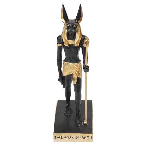 Starożytny egipski bóg Anubis z podziemia przez ołtarza Ankh strażnika łusek, posąg posągu figurka kolekcjonerska rzeźba egipt