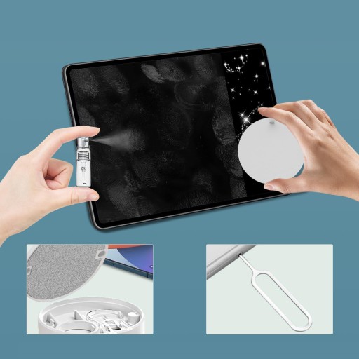 - ✅Spray do czyszczenia ekranu i ściereczka do czyszczenia ekranu, łatwe do usunięcia oleju i odcisków palców z ekranu telefonu komórkowego, tabletu, laptopa, wskaźnika oraz obiektywu i aparatu.