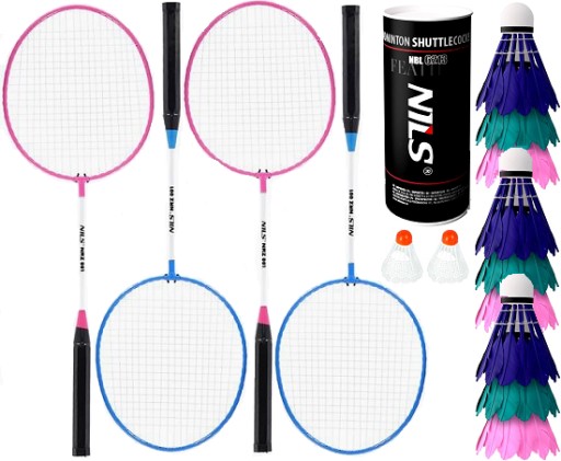 ⚡2x ZESTAW NRZ001 STEEL / ZESTAW DO BADMINTONA 2 RAKIETY + LOTKA NILS + 3x NBL6213 LOTKI Z PIÓR MULTICOLOR 3 SZT. NILS⚡