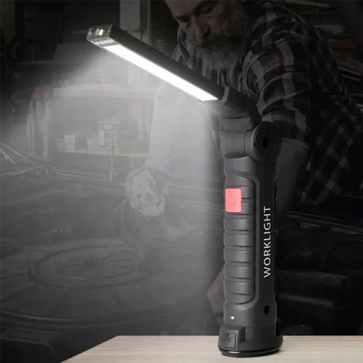 МОЩНАЯ ЛАМПА ДЛЯ МАСТЕРСКОЙ, СВЕТОДИОДНЫЙ КРЮК, МАГНИТ, ПЕРЕЗАРЯЖАЕМЫЙ USB, 2x COB