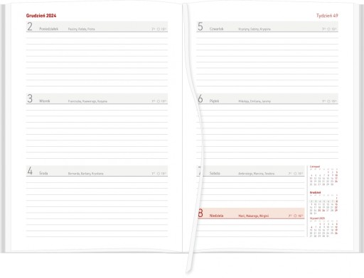 - solidny kalendarz - blok kalendarza szyty i klejony, wzmocniony krepą na grzbiecie