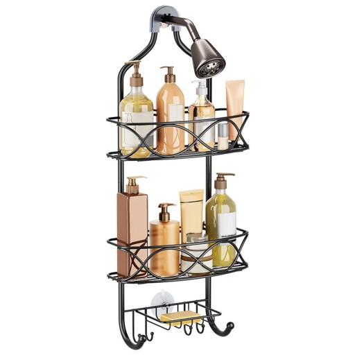 Stojak prysznicowy nad głowicą prysznicową z haczykami. Półki prysznicowe do wanny. Regał do przechowywania