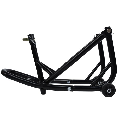 Stojak na kierownicę motocykla do prostych i praktycznych narzędzi uruchamiających podniesienie przedniego koła motocykla. Przednie koło jest lekko podnoszone za pomocą roli i mechanizmu dźwigniowego, co ułatwia prace konserwacyjne. Bez dodatkowych części, odpowiednich do prawie wszystkich motocykli do 250 kg, w tym pasującym zestawie adapterów głowicy głównej (13 mm, 15 mm, 16,5 mm, 17 mm, 18 mm)