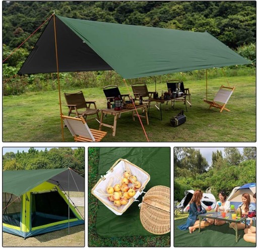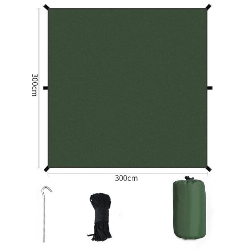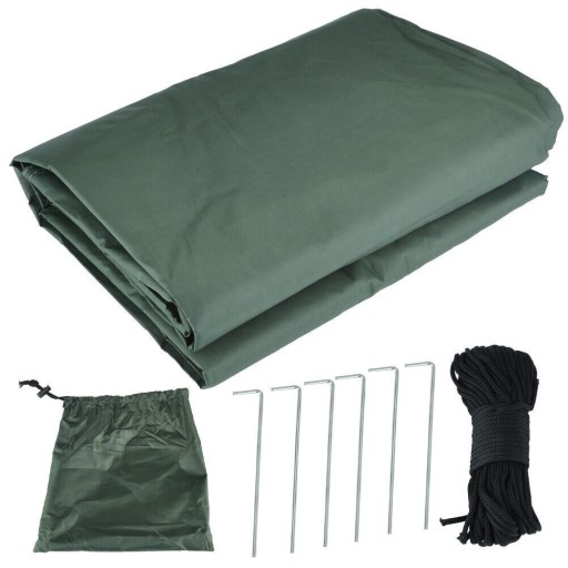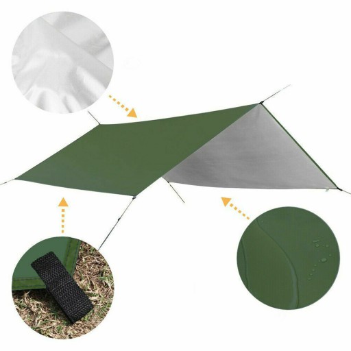 - Doskonałe schronienie na hamak, samochód, ubrania, zdalną kuchnię lub psa. Może służyć jako osłona przeciwdeszczowa na hamak, prosta plandeka namiotowa lub mata piknikowa.