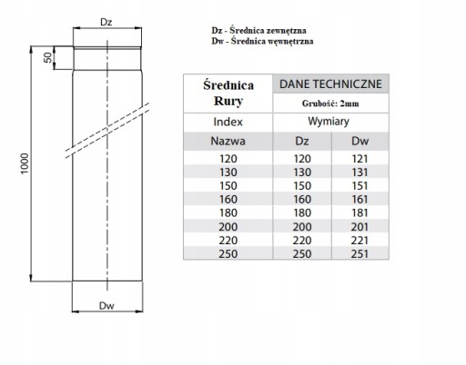 Rura spalinowa 1m fi 120mm z grubej blachy 2mm
