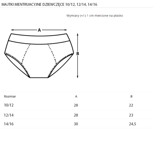 - Obwód w pasie bez rozciągania - 28 cm, wysokość stanu - 22 cm