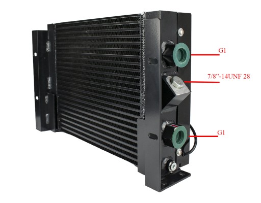 Chłodnica oleju hydraulicznego AH1417T-CA, zaprojektowana do celów mobilnej hydrauliki, gdzie wymagane są wysokie osiągi i wydajność, a fizyczne wymiary muszą być jak najmniejsze aby zapewnić łatwa instalację.