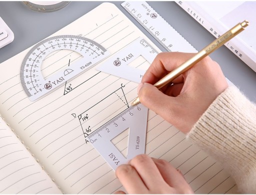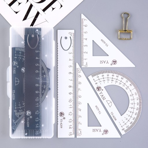 - Zawartość opakowania: 1 × linijka; 1 × kątomierz; 2 × Trójkąt