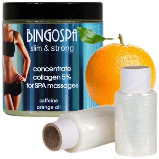 Koncentrat Kolagen 5% BingoSpa do masażu to produkt wzbogacony o cenne składniki takie jak kofeina i olejek pomarańczowy, które pochodzą z naturalnych źródeł roślinnych i znane są ze swojego działania antycellulitowego oraz zdolności do profilaktyki i redukcji rozstępów.