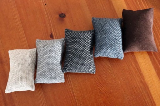 Poduszeczki są wykonane z mocnego, wytrzymałego materiału obiciowego o podwyższonej odporności na zabrudzenia i rozdarcia, w kolorze naturalnego, beżowego płótna lnianego. Są elastyczne, dzięki czemu można na nich zapiąć zegarki w różnych rozmiarach, na paskach i bransoletach. Poduszeczki lubią się gubić, dlatego jedna jest dołożona dodatkowo.