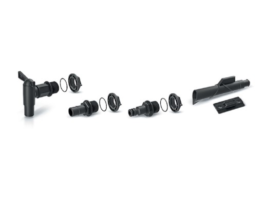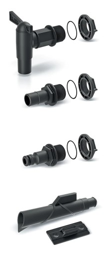 System odprowadzający wodę zgromadzoną w zbiorniku na deszczówkę. Zestaw zawiera 5 elementów. Wylewka kompatybilna ze zbiornikami MAZE; TUBE; SMOOTH; PERUNO. Kranik wyposażony w dodatkową uszczelkę i nakrętke.