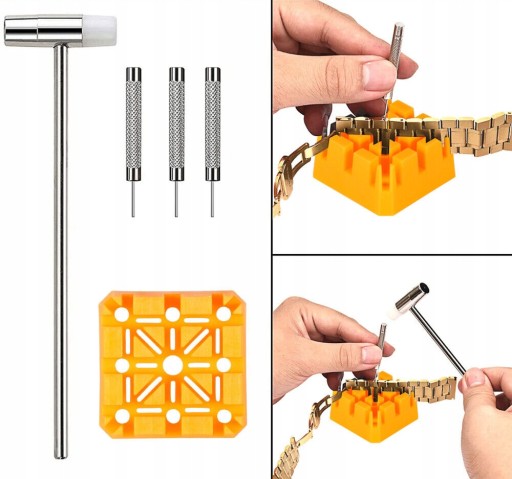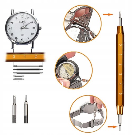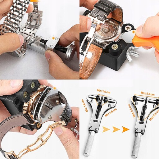 - ergonomiczny kształt sprawia, że jest łatwy w obsłudze. Łatwe wyjmowanie koperty zegarka, wymiana baterii zegarka, dopasowanie ogniw paska, wymiana sztyftów paska i innych prac konserwacyjnych zegarka.