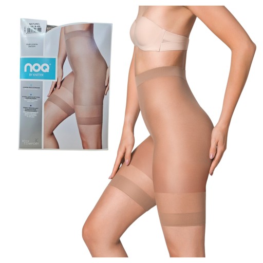 Delikatne, przezroczyste majtki przeciw otarciom na udach. Wykonane z przędz oplatanych, co zwiększa ich wytrzymałość. Przedłużone nogawki zapobiagają obcieraniu się wewnętrznych części ud. Szeroki nieuciskający ściągacz w pasie i na dole nogawek utrzymuje majtki we właściwym miejscu. Wysoka, super elastyczna część majtkowa.