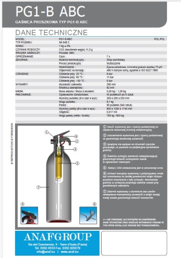 - Masa środka gaśniczego: 1 kg
