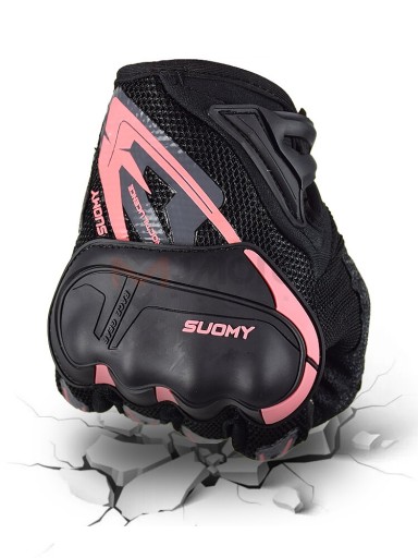 Rękawice SUOMY są niezwykle lekkie i wygodne. Największą ich zaletą dzięki specjalnej powłoce jest możliwość obsługi telefonu palcem wskazującym.Rękawiczki zapinane są na rzep dzięki czemu ich zakładanie jest szybkie i wygodne. Idealnie dopasowują się do kształtu dłoni. Rękawice posiadają osłony kostek. Wykonane są z oddychającej tkaniny absorbującej i odprowadzającej wilgoć i pot. Starannie wykonane poszycia nie uwierają i nie przeszkadzają podczas jazdy.Można ich używać zarówno do jazdy na motocyklu jak również do biegania, chodzenia po górach czy innych zajęć na świeżym powietrzu.