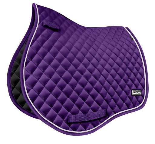 Klasyczny czaprak wykończony srebrnym pipingiem, podszyty oddychającym i łatwym w praniu podszyciem z siateczką.