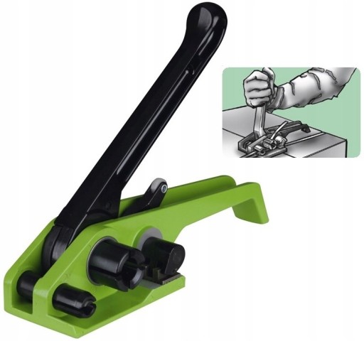 Wysokiej klasy napinacz wykonany z trwałych materiałów. Napinacz jest bezawaryjny, trwały i bardzo solidny. Służy do spinania taśm poliestrowych przy użyciu zapinek drucianych. Prosty w obsłudze i lekki. Napinacz napina i odcina taśmę.