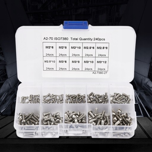 Wszystkie śruby są umieszczone w pudełku, co ułatwia przenoszenie.