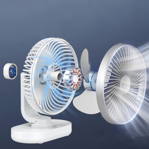 - Ten ładowalny wentylator ma wbudowaną baterię 5000 mAh zapewniającą długą żywotność baterii.