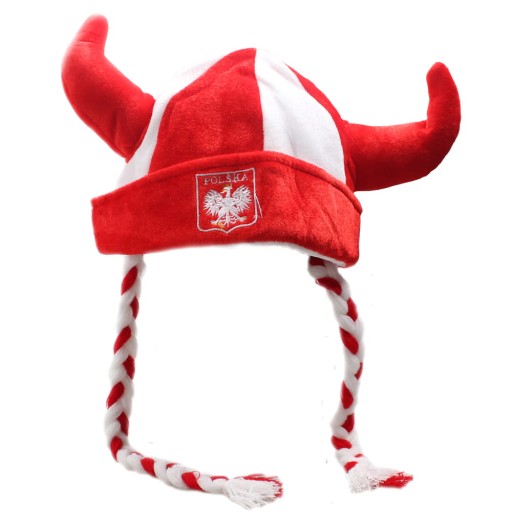БЕЛО-КРАСНАЯ ШЛЯПА С ВЕЕРНЫМИ РОГАМИ