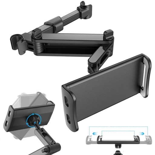 Uniwersalny uchwyt samochodowy na zagłówek pasuje do większości modeli telefonów oraz tabletów o wielkości 4,5" - 11".Obrót o 360 stopni umożliwia obracanie urządzenia pod dowolnym kątem, wystarczy wyregulować wysuwane ramię uchwytu aby uzyskać najlepszą dla siedzącego widoczność - dzięki czemu możesz cieszyć się filmami, czytać, grać i słuchać muzyki podczas podróży.