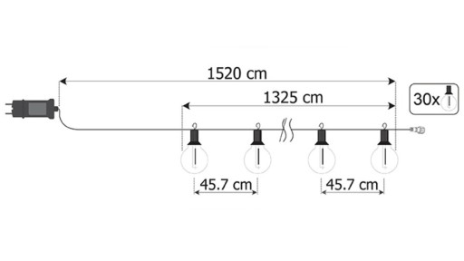 Każda żarówka posiada stały uchwyt (haczyk), który pozwala na ingerencję w regulację długości i zagęszczenie punktów świetlnych na całej długości.