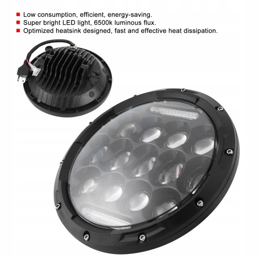 Reflektor LED 7 cali 75 W. 6500 K. Wydajny reflektor o wysokiej jasności. Pasuje do Jeepa Wranglera.