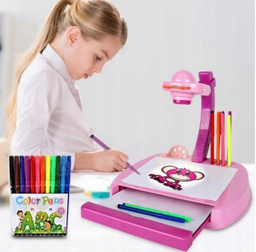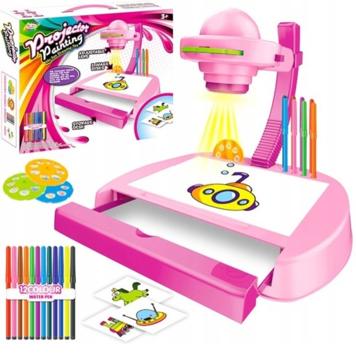 Projektor do nauki rysowania i malowania to świetny sposób na naukę poprzez zabawę dla Twojego dziecka. Już od najmłodszych lat pobudza wyobraźnie, ćwiczy spostrzegawczość oraz pamięć. Edukacyjna zabawka, która rozwinie w dziecku zdolności plastyczne, które zaowocują w dalszej nauce w przedszkolu, a później w szkole. Rzutnik w ładnych kolorach różu to idealny prezent dla każdej dziewczynki, która lubi rysować.