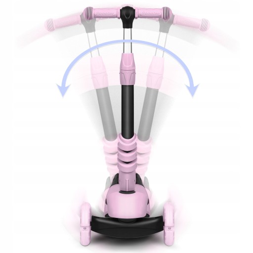 Kierowanie odbywa się wyłącznie za pomocą balansowania ciałem, bez skręcania kierownicą. Wystarczy lekko pochylić się w żądaną stronę – i już! Dziecko szybko opanowuję tę technikę jazdy, a przy tym ćwiczy swój zmysł równowagi. Hulajnoga, skręcając, stabilnie utrzymuje się w pionie, dzięki trzem kółkom.