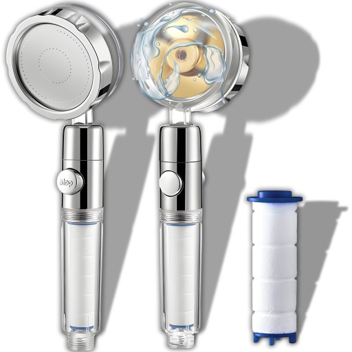 - Daje efekt obrotowy wody dzięki wbudowanej turbinie.