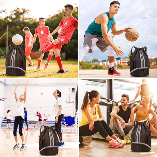 - Posortowane przegródki: w dolnej komorze torby sportowej możesz przechowywać dodatkową parę butów treningowych, a otwory wentylacyjne wspomagają cyrkulację powietrza, zapewniając świeżość. W przedniej komorze zmieści się większość piłek do koszykówki, piłki nożnej i kaski, dzięki czemu nie wymaga użycia rąk i idealnie nadaje się do ćwiczeń i uprawiania sportów na świeżym powietrzu.