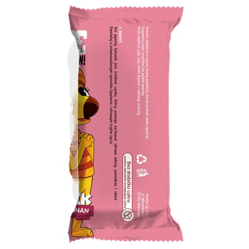 Baton BeRAW kids Truskawka Banan to pyszny batonik przekąskowy, na bazie składników naturalnych, bez dodatku cukru.