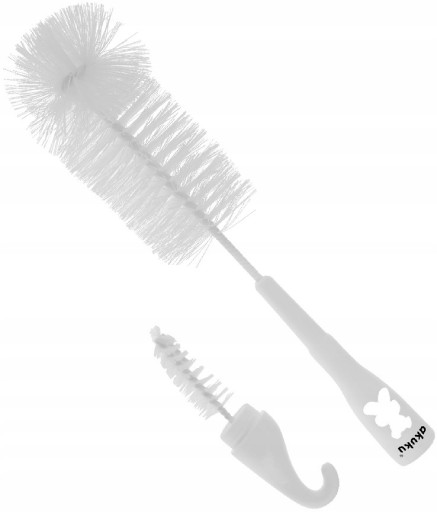 Zestaw specjalnie zaprojektowanych szczotek (duża i mała) do dokładnego mycia butelek i smoczków. Pozwalają na precyzyjne usuwanie zabrudzeń w trudno dostępnych miejscach. Wykonane z bezpiecznych materiałów.