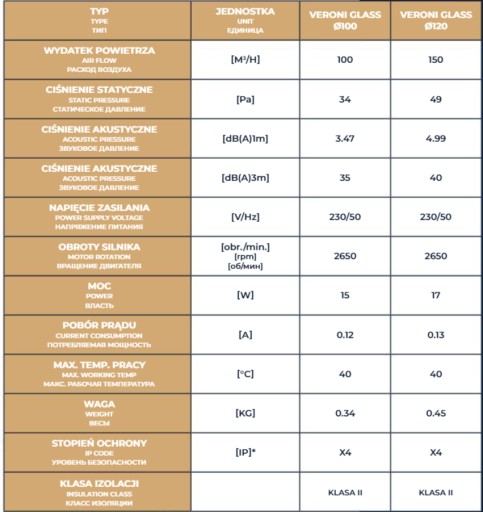 ✅ Jakość wykonania wentylatora Veroni Glass WCH 100 połączona została z dbałością o każdy szczegół.