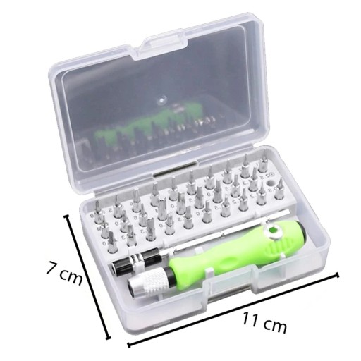 - Zestaw składający się z aż 32 elementów, który zastąpi Ci zdecydowaną większość zwykłych śrubokrętów