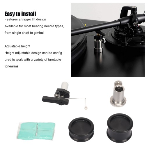 ⏩REGULOWANA WYSOKOŚĆ: Podnośnik ramienia ma regulowaną wysokość, którą można skonfigurować do pracy z różnymi ramionami na różnych gramofonach.