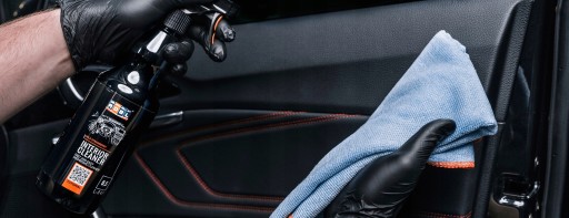 - Nanieść ADBL Interior Cleaner na szczotkę lub mikrofibrę.