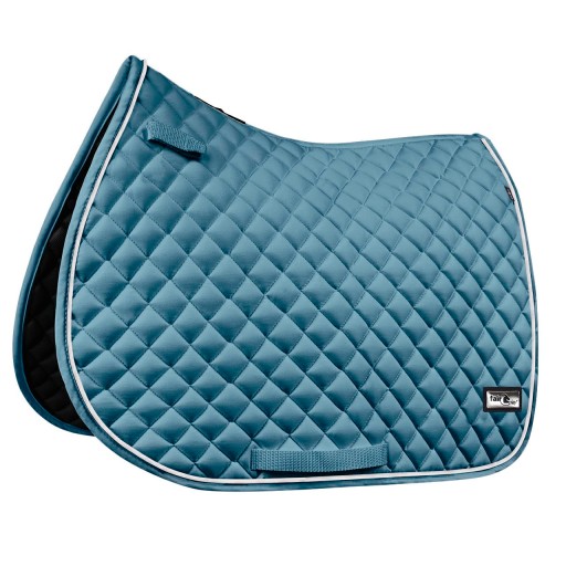 Klasyczny czaprak wykończony srebrnym pipingiem, podszyty oddychającym i łatwym w praniu podszyciem z siateczką.