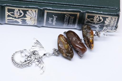 Elegancka zakładka do książki z zawieszką w kształcie smoka z dodatkiem bursztynu.