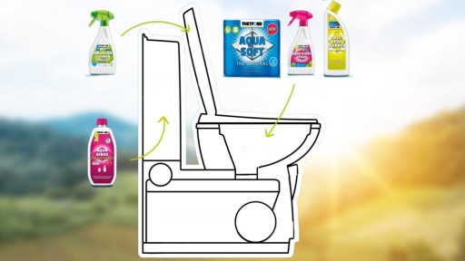 Domowe środki czyszczące są zbyt agresywne dla powierzchni plastikowych. Dlatego używaj ulepszonego środka do czyszczenia łazienki Thetford do czyszczenia zewnętrznej części przenośnej toalety i łazienki w pojeździe rekreacyjnym. Został opracowany specjalnie do powierzchni plastikowych i ma formułę opartą na naturze. Aby uzyskać błyszczące wykończenie, wytrzyj powierzchnię miękką, suchą szmatką.