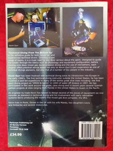 "Technical Diving From The bottom Up" is a guide to both 'would be' and experienced technical divers. Covering a range of topics, it is designed to guide the reader through the basics such as physiology and equipment configuration, before moving onto deep mixed gas decompression diving and the use of rebreathers.