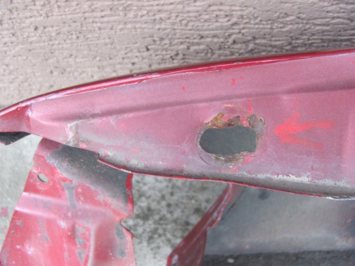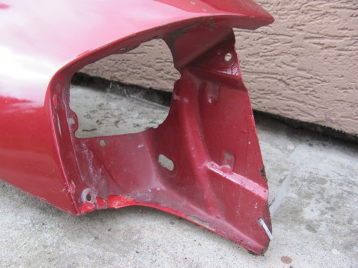 Błotnik posiada porozwiercane dziury montażowe i jest powyginany. Uszkodzenia widoczne na zdjęciach !!