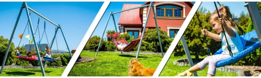 Taki zestaw pozwala na wiele konfiguracji m.in. jednoczesne korzystanie z hamaka przez rodzica i huśtanie się dwójki dzieci.