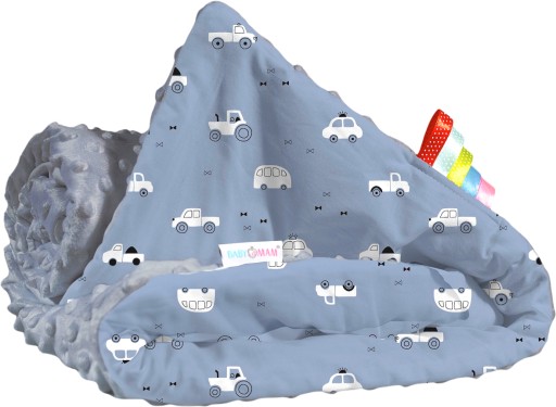 Kocyk jest dwustronny z jednej strony milutki materiał minky, z drugiej bawełna w różnych wzorach.