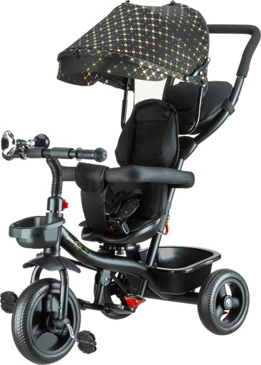 Będzie stanowił bezpieczny i wygodny środek transportu, który będzie mógł zastąpić tradycyjną spacerówkę. Obrotowe siedzisko pozwoli na ustawienie go przodem lub tyłem do kierunku jazdy. Pozwoli to, więc dostosować go do indywidualnych preferencji maluszka. Wygodna rączka do prowadzenia i sterowania rowerkiem pozwoli rodzicom na bezproblemowe operowanie kierunkiem i prędkością jazdy. Dwa pojemniki oraz odpinana saszetka na drobiazgi pozwolą zabrać ze sobą zabawki i inne rzeczy, które przydadzą się podczas spaceru. Bezpieczeństwo zapewnią odpinana barierka i pasy, które zapobiegną one przed wypadnięciem dziecka z rowerka. Komfortowe siedzisko zapewnią wygodę bez względu na jak długi spacer się wybierzemy, a składany daszek uchroni maluszka przed promieniowaniem w słoneczne dni.