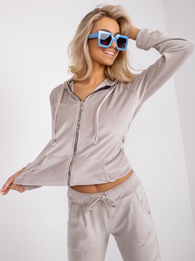 ROZPINANY WELUROWY KOMPLET DAMSKI Z PODWÓJNIE PODSZYTYM KAPTUREM