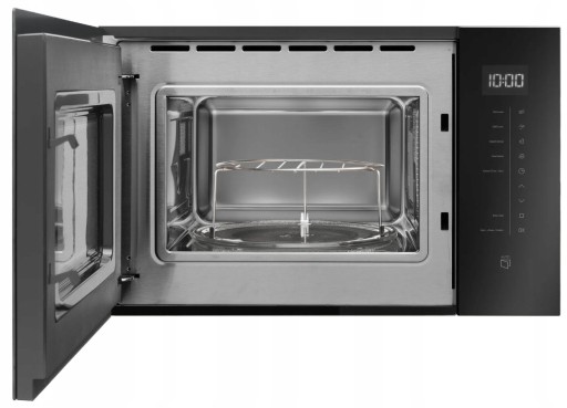 Kuchenka mikrofalowa do zabudowy w kolorze czarnym o pojemności 25l, mocy mikrofal 900W i mocy grilla 1000W.