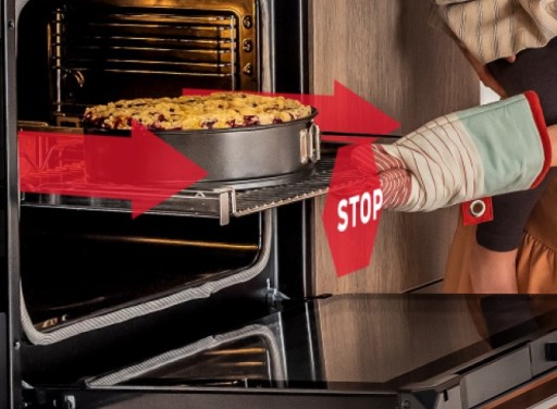 Wysuwając rozgrzaną blachę z gorącą potrawą łatwo o poparzenie i ryzyko upuszczenia blachy. Nie w piekarnikach Amica! Wszystko za sprawą prowadnic. Dzięki nim możesz w pełni bezpiecznie, bez ryzyka poparzenia, wsunąć i wysunąć nawet rozgrzaną i mocno obciążoną blachę.