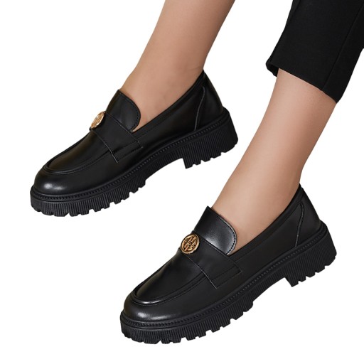 Klasyczne damskie mokasyny na grubszej podeszwie. Para jest wykonana ze skóry ekologicznej, zaś wkładka to tkanina. Idealne do casualowych outfitów!